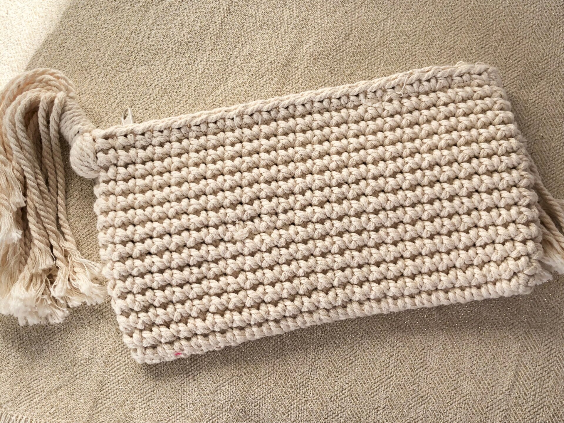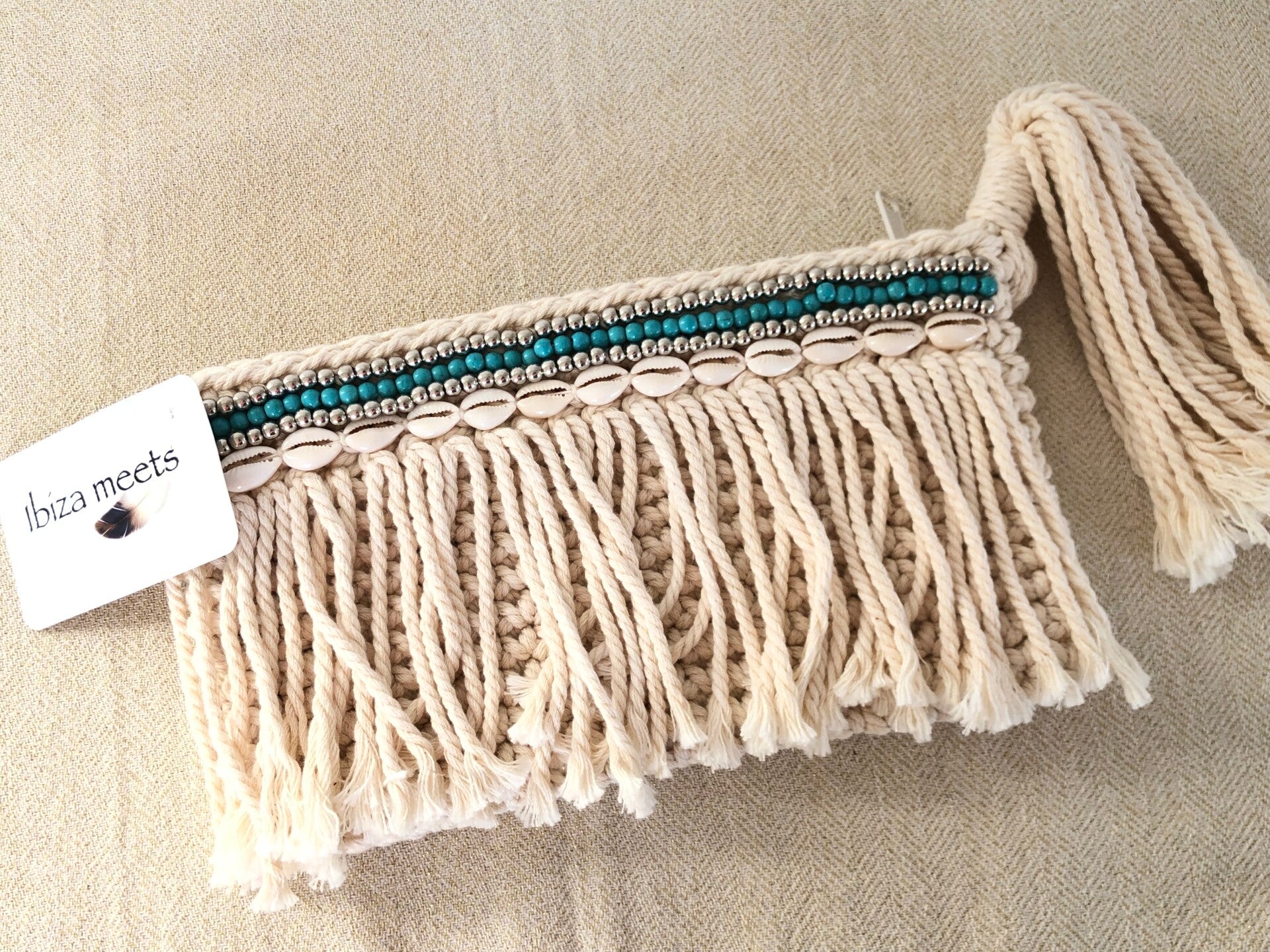 Sluit met rits, versierd met kralen en Kauri schelpjes.
