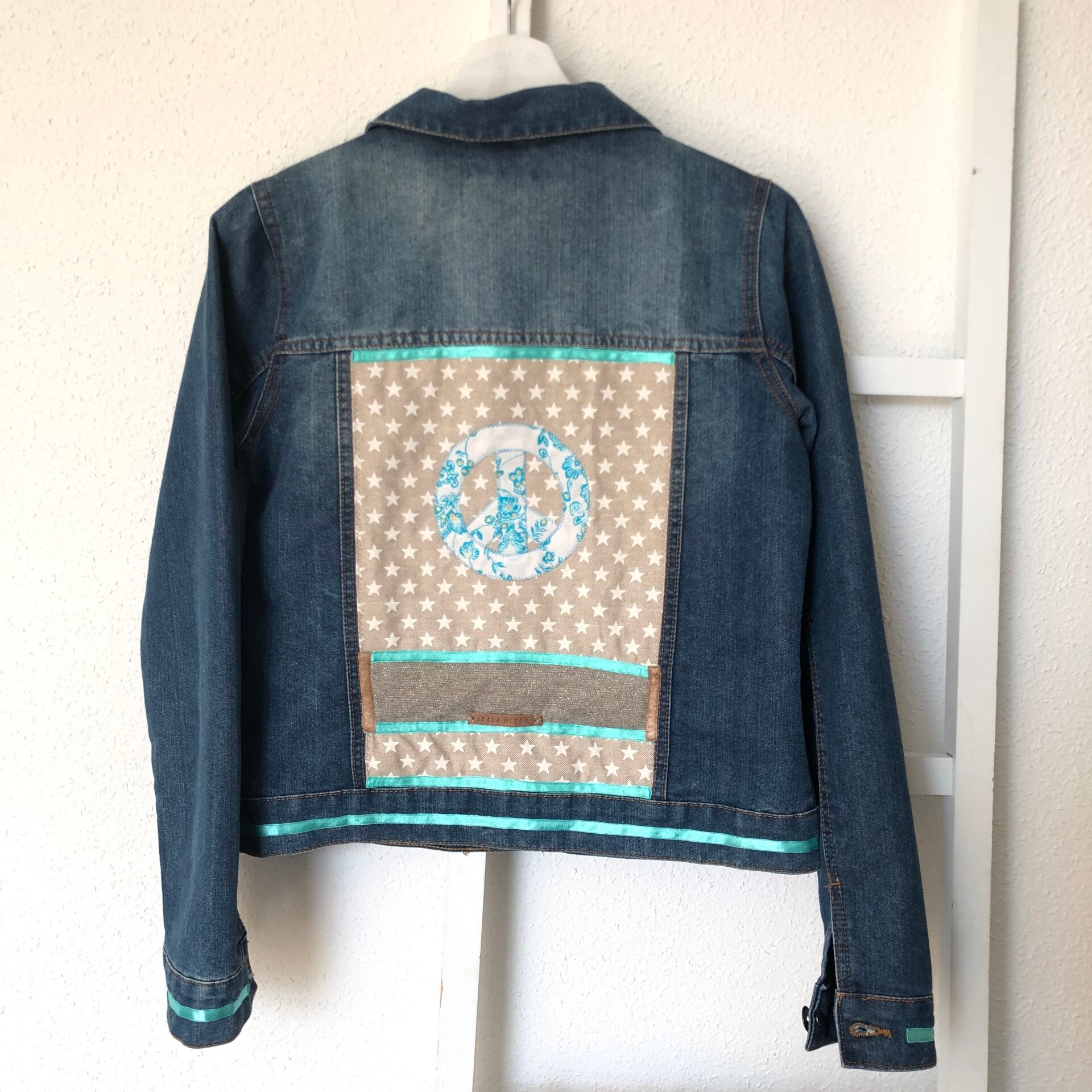 Exclusief is dit up-cycled jeansjacket, hiervan is er maar 1, ontworpen en gemaakt in eigen atelier.