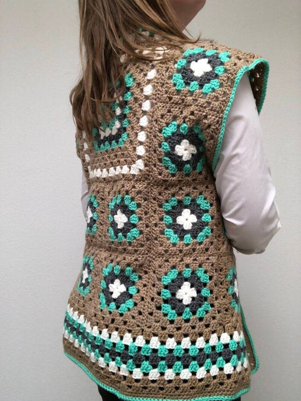 Granny square gilet turqouise