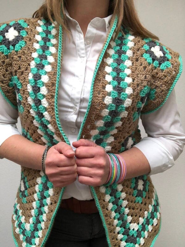 Granny square gilet Turqouise