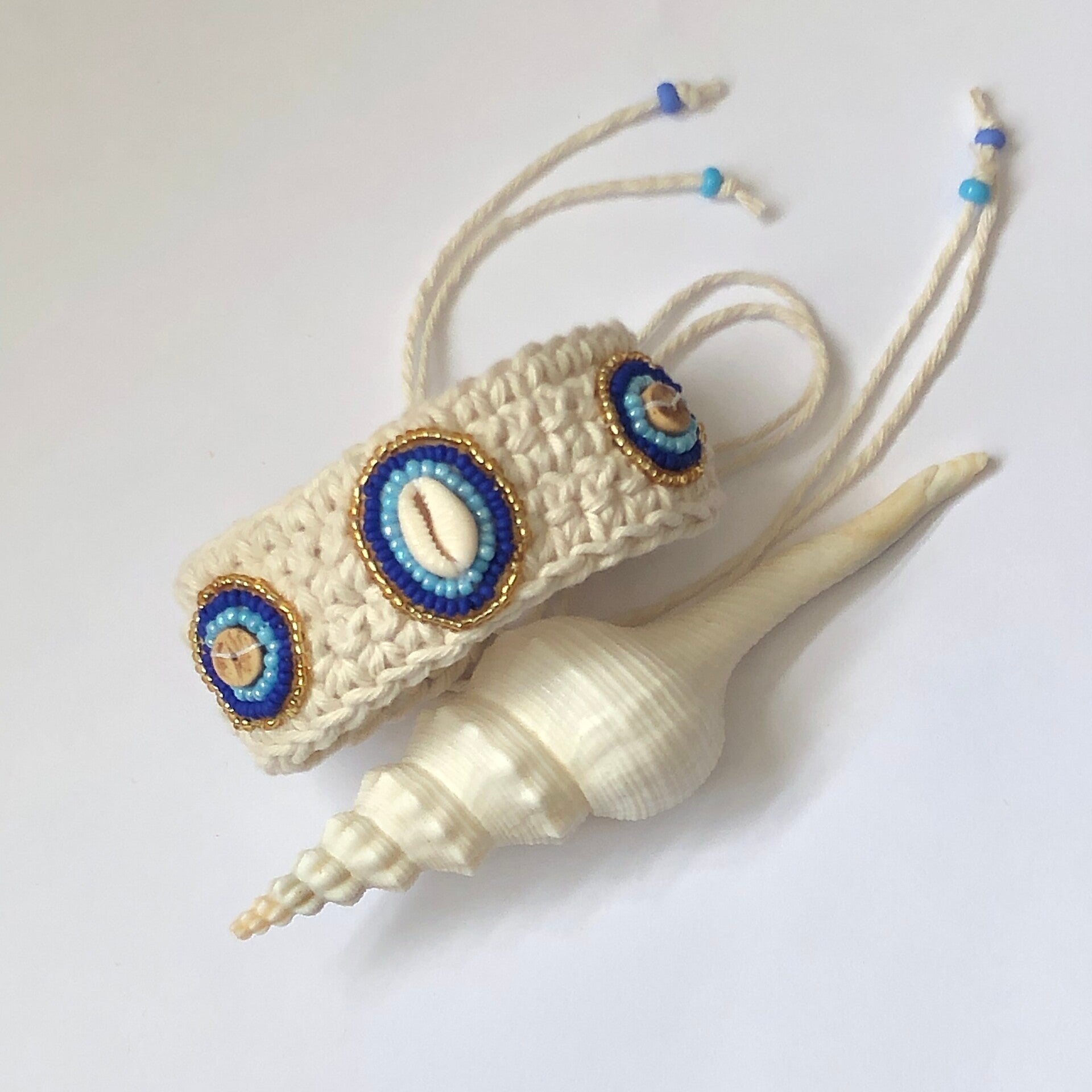 Iedere band is anders, versierd met oa: schelpjes, glaskraaltjes, metaalkraaltjes, kokos.
