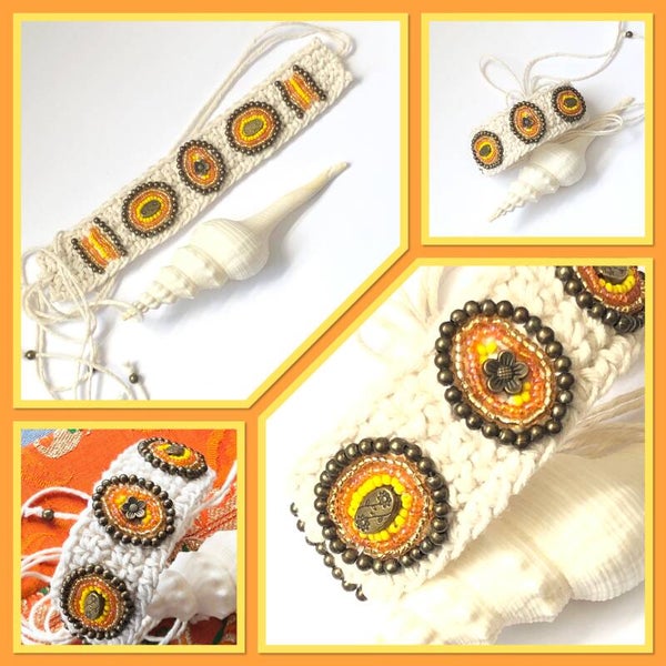 Iedere band is anders, versierd met oa: schelpjes, glaskraaltjes, metaalkraaltjes, kokos.
