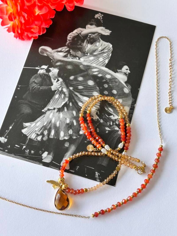 Materiaal: facet kralen, stainless steel, brass/metaal.