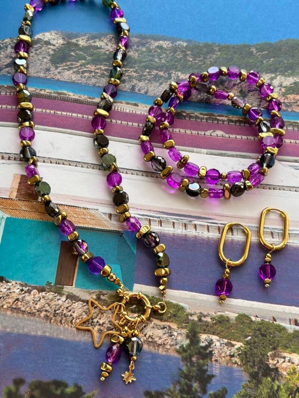 Kleur: paars, groen, grijs