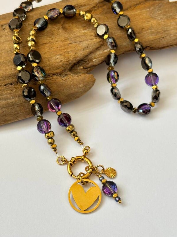 Deze ketting sluit met een boeislot, deze is voorzien van div bedels.