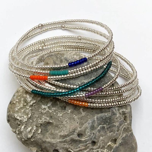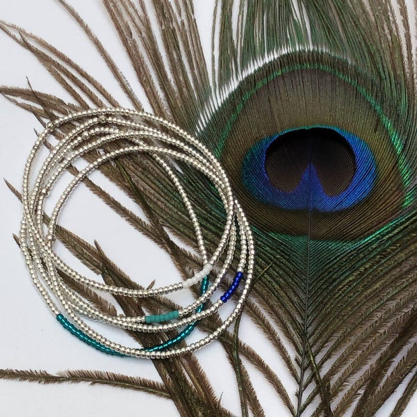 Sterling silverplated armband, met aquasilver miyuki glaskraaltjes.